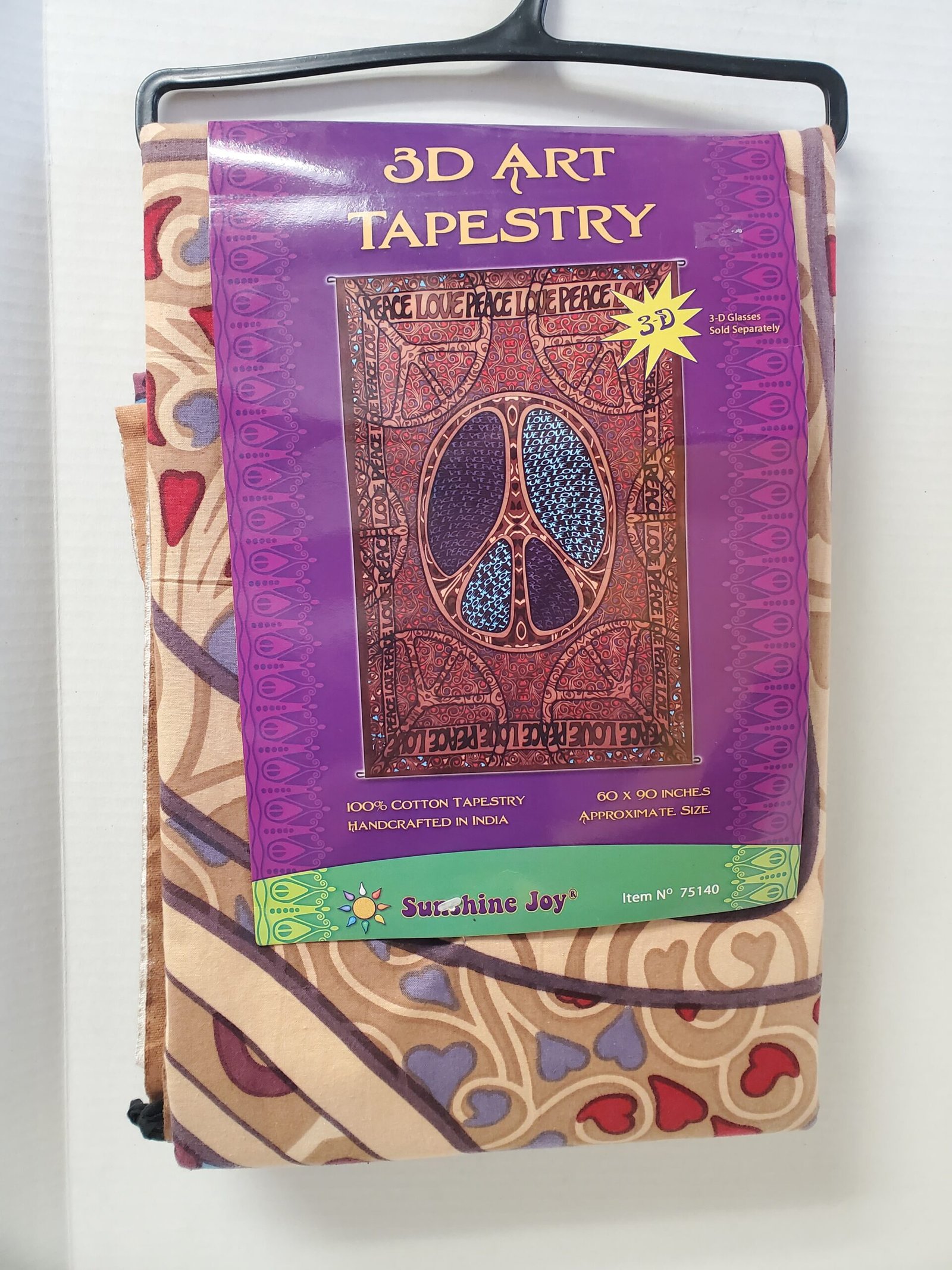 3-D Tapestry: Designed to dazzle. The artwork appears to leap off the cotton fabric when viewed with Sunshine Joy’s special 3D glasses (sold separately).