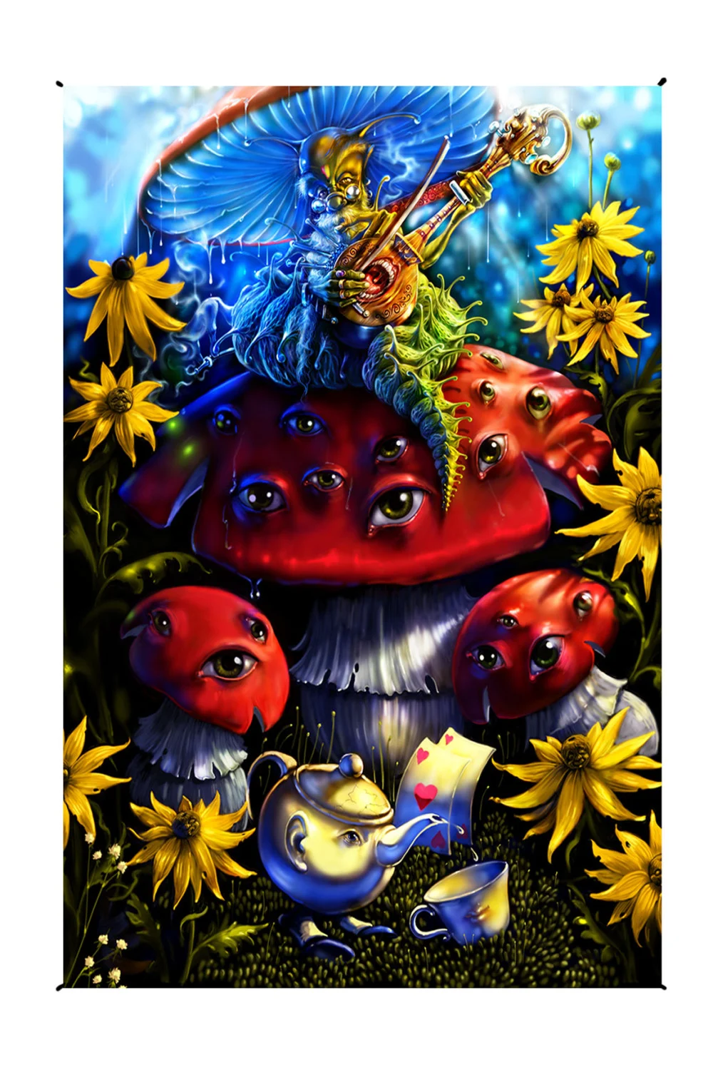 Mufungi design Jam Heady Art Print Mini Tapestry 30×45″ — Artwork by Richard Biffle. Measures approximately 30×45 inches Uplifting-resolution artwork printed on uplifting quality, 100% cotton fabric. Brought to you by our good friends at Zest For Life. These digital print tapestries incorporate the latest in uplifting-resolution digital fabric printing. These tapestries make great wall hangings and can also be used as tablecloths, beach sheets, room dividers, curtains, window treatments, ceiling décor, and furniture covers.